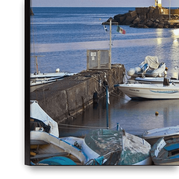 Koop de foto Winterse avondsfeer in de haven van Aci Trezza van Silva Wischeropp op canvas, aluminium dibond, (ingelijste) fotoprint, behang en ArtFrame, op maat geprint in Fine-Art kwaliteit.