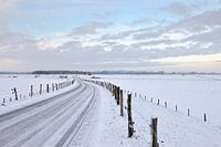 Uitzicht over de Bislicher Insel, weids weidelandschap aan de Niederrhein, Nordrhein-Westfalen, winterse indruk.