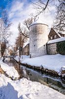 Winterse sneeuw bij de gracht en stadsmuur in Isny im Allgäu in Duitsland