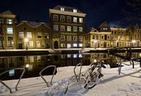 Een winters plaatje van een paar besneeuwde fietsen aan de Leidse Oude Rijn. Op de achtergrond is het gebouw te zien waar eens uitgeverij Brill was gevestigd. Het gebouw dateert uit 1774. De foto is genomen in de winter van 2012-2013 na een flinke periode met sneeuw.