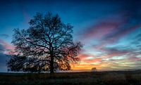 Zonsondergang in de winter boven de heide bij de schaapskooi van Heerde op de Veluwe in Gelderland.