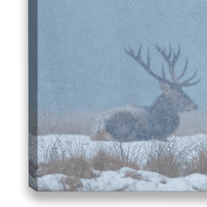 Edelherten tijdens een sneeuwbui op de Hoge Veluwe.