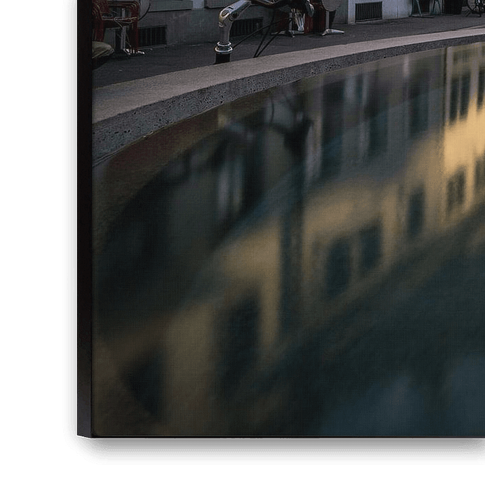 Spiegeling in de fontein in de oude stad van Winterthur bij zonsondergang.