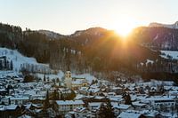 Winteruitzicht van Oberstaufen bij zonsopgang