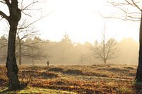 In dit prachtige licht geeft de eenzame wandelaar over de heide een sereen beeld.
