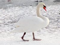 Fotografie van een zwaan in een bevroren vijver in lelystad