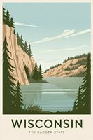 Een harmonieus samenspel van zachte kleuren en majestueuze natuur die de kalme wateren van Wisconsin vastlegt. De gestileerde kliffen en dichte bossen brengen een sfeer van vrijheid en avontuur over. Ideaal voor een woonkamer om een ontspannen, uitnodigende sfeer te creëren en herinneringen aan het buitenleven op te roepen.