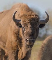 Portret van een Wisent, Europese Bizon, in natuurgebied De Slikken van de Heen, Sint Philipsland in Zeeland in Nederland. Beheerd door Het Zeeuwse Landschap.