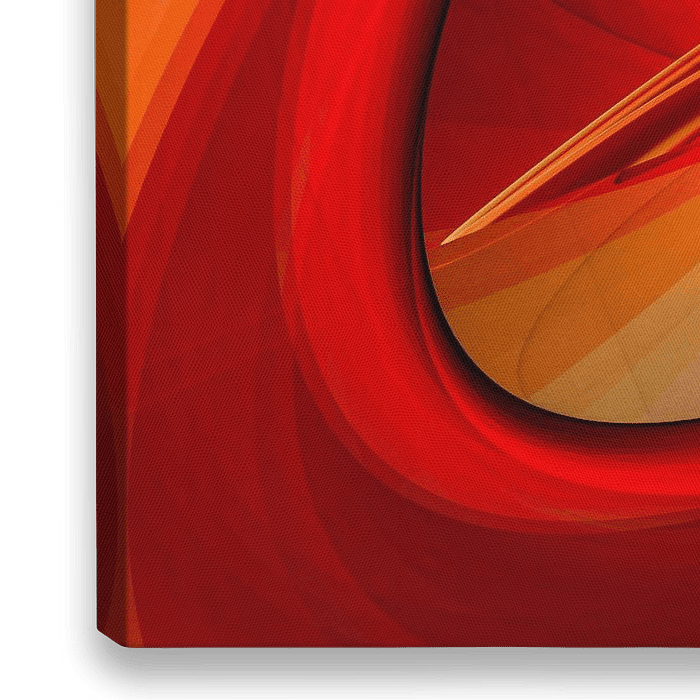 Een kunstwerk gemaakt op basis van wiskundige berekeningen met behulp van de Fibonacci-sequentie en de artistieke uitvoering van het resultaat met krachtige kleuren in het kleurbereik tussen rood en geel.