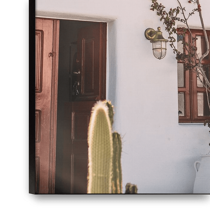 Koop de foto Wit Huis en Cactus van Patrycja Polechonska op canvas, aluminium dibond, (ingelijste) fotoprint, behang en ArtFrame, op maat geprint in Fine-Art kwaliteit.