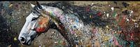 Koop dit abstracte kunstwerk Wit Paard Met Verfspatten van OMG Art op canvas, aluminium dibond, (ingelijste) fotoprint, behang en ArtFrame, op maat geprint in Fine-Art kwaliteit.
