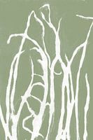 Moderne botanische illustratie in retrostijl. Monotype van een echte plant. Zachte trendy pastelkleur, delicate texturen. Wabi-sabi, Shabby chic, Romantisch, Scandinavisch, Retro, Basic, Minimalistische interieurstijl.