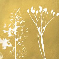 Botanische illustratie in vintage stijl. Planten in wit op goud. Romantisch, Boho-chic, Landelijk, Basis interieurstijl,