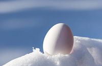 Koop de foto Wit op wit, een ei in de sneeuw van Adelheid Smitt op canvas, aluminium dibond, (ingelijste) fotoprint, behang en ArtFrame, op maat geprint in Fine-Art kwaliteit.