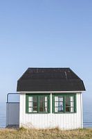 Ik was er een paar dagen en heb gewacht op een heldere ochtend, om dit huisje te fotograferen. Het zachte licht viel recht op het huis en de zee en lucht gaan bijna naadloos in elkaar over. Hierdoor krijg je een mooi rustig beeld, waarbij het houten strandhuis het prominente onderwerp is.