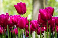 Deze kleine witte tulp stond midden tussen de overweldigende rozerode te stralen. Een grappig gezicht. Als je bedenkt hoeveel er geplant worden op de Keukenhof kun je je ook wel voorstellen dat er eens eentje verkeerd staat. Grappig!