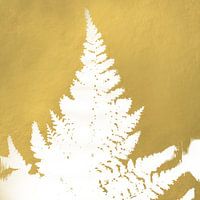 Botanische illustratie in vintage stijl. Varenblad in wit op gouden achtergrond. Monotype van een echte plant. Basic, romantisch, Boho-chic interieurstijl.
