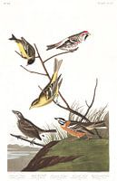 John James Audubon werd geboren op 26 april 1785 in Les Cayes, Santo Domingo, Frankrijk (nu Haïti). Van het landgoed van zijn vader in Pennsylvania maakte Audubon de eerste Amerikaanse experimenten met vogelbanden. Hij begon alle ornithologische dingen te verzamelen en potlood- en pasteltekeningen van vogels te maken. Toen zijn zelfvertrouwen als kunstenaar groeide, waagde hij zich aan aquarellen, het medium dat hij het vaakst zou gebruiken. Audubon werd een reizende kunstenaar, die af en toe leerlingen lesgeeft, maar altijd lokale vogels en hun natuurlijke habitat schildert. Zijn belangrijkste werk, een kleurenplaatboek getiteld The Birds of America (1827-1839), wordt beschouwd als een van de beste ornithologische werken ooit voltooid. Audubon stierf op 27 januari 1851 in New York City. Noot: Dit werk is ook zonder begeleidende tekst in de illustratie te verkrijgen. Neem hiervoor contact met ons op.