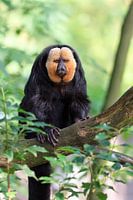Prachtige close up portret opname van een Witgezichtsaki (Pithecia pithecia) uit het Tropisch regenwoud in Zuid-Amerika