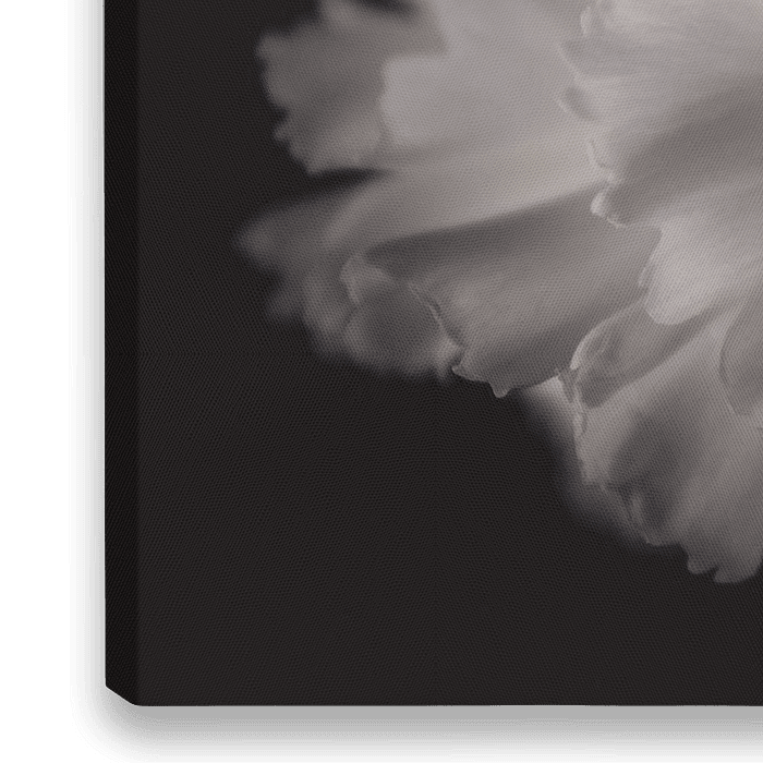 De witte anjer straalt met haar zachte, licht gekartelde bloemblaadjes een elegante eenvoud uit. Het delicate lichtspel en de fijne textuur benadrukken de pure schoonheid en tijdloze charme van deze bloem.