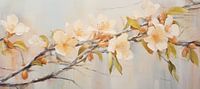 Details: bloemen schilderij, tak schilderij, witte bloemen, groen, kunst, moderne kunst, zachte kleuren, natuurlijk, vrolijk