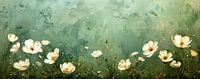Dit schilderij toont een serene en kalme weergave van witte bloemen, waarschijnlijk anemonen, die zich uitstrekken over een zachtgroene achtergrond.