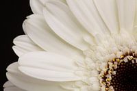 Een close-up van een witte Gerbera tegen een zwarte achtergrond. Deze snijbloemen zijn prachtig en worden gekweekt in veel verschillende kleuren.