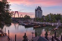 De Oude Haven met het witte huis en de Willemsbrug op de achtergrond tijdens een kleurrijke zonsopkomst