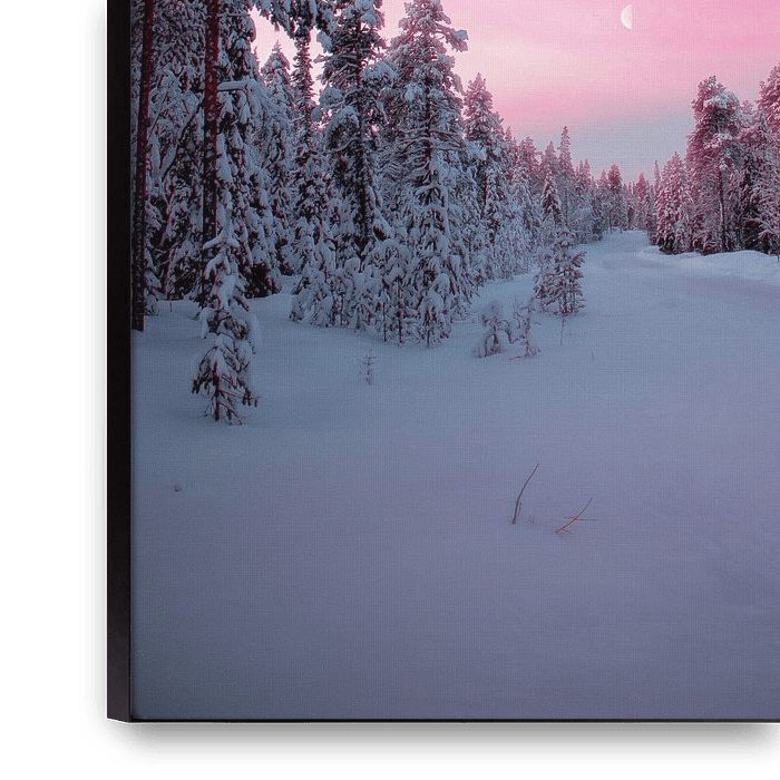 Jouw gekozen kunst op doek, gespannen in een aluminium frame. Snel en eenvoudig te verwisselen voor een frisse uitstraling en helemaal zoals jij het wilt.