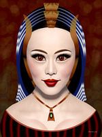 Deze bijna geheel witte koningin vind ikzelf een mooie tegenhanger van mijn werk "Meisje Met Piercing" die een mooie donkere huid heeft. Ze lijken op elkaar en dat is niet toevallig. Ik heb dezelfde basis gebruikt voor deze beide werken, maar ook voor enige andere werken.