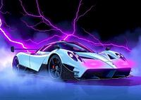 Koop dit digital art kunstwerk Witte Pagani Zonda R - Neon Smokey, Bliksem van MIROKKU als reproductie geprint op canvas, aluminium dibond, (ingelijste) fotoprint, behang en ArtFrame. Voor jou op maat geprint in Fine-Art kwaliteit.