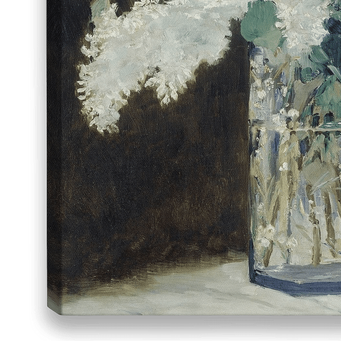 Deze seringsspray - even laconiek als tonaal fascinerend - behoort tot een groep stillevens die Manet in de laatste jaren van zijn leven schilderde toen hij steeds zieker werd. Manet's penseel legt met eenvoud en gevoeligheid de voorbijgaande effecten van het licht vast op de tedere pastelkleuren van de lila, op de onrustige textuur van de bloesems, en in de onafhankelijke onrust van de lichtbrekingen in het water. Decennia daarvoor had hij al veel schilderachtige finesse aan eenvoudige stillevens gewijd. Maar de late werken zoals deze, met zijn concentratie op fijnzinnige kleurcombinaties - blauw, groen en bruin - en op de minutieus geobserveerde materialiteit van de zware bloemhoofdjes, is pure schilderkunst, beoefend voor zijn eigen bestwil en getuigt in zijn concentratie van de wijze zelfbeperking van de rijpe, oudere kunstenaar.