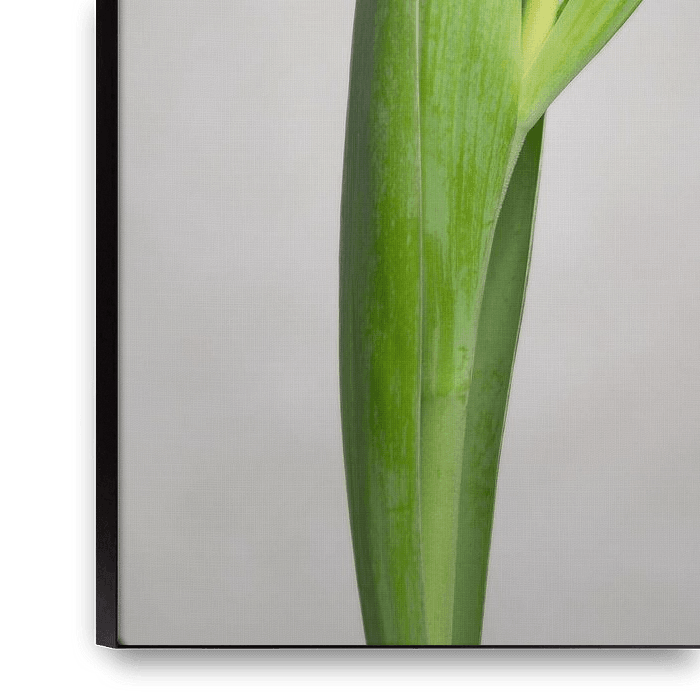 Een minimalistische weergave van een witte tulp in opwaartse beweging. De strakke lijnen en frisse groentint benadrukken kracht, groei en ontwikkeling. Tijdloos en verfijnd, perfect voor het creëren van een rustige en stijlvolle sfeer in huis, op kantoor of in een hospilality omgeving.