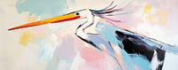 Witte Vogel | Witte Vogel en Kleuren - Op dit schilderij zie je een grote witte vogel met een lange, oranje snavel, die prachtig is afgebeeld met vachtige penseelstreken in pastelkleuren, waardoor het een fris en modern kunstwerk is.