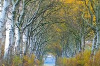 Witte abelen in herfstkleuren langs een Zeeuwse weg