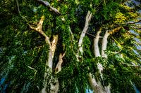 HDR beeld natuur flora Boomstammen en takken met bladerdak van haagbeuk in de zomer