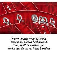 Cartoon animatie - Witte bloedcellen stromen door de aderen van een lichaam naar de plaats van een incident. Met een begeleidend couplet in het Nederlands.