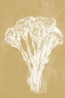 Koop dit bloemen kunstwerk Witte bloem in retrostijl. Moderne botanische minimalistische kunst in geel en wit van Dina Dankers op canvas, aluminium dibond, (ingelijste) fotoprint, behang en ArtFrame, op maat geprint in Fine-Art kwaliteit.