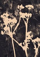 Gemengde media botanische collage. Monotype print van echte bloemen, bladeren of planten gecombineerd met texturen.