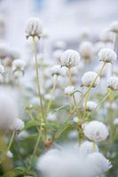 Deze foto van veldbloemen laat de kracht van simplicity zien. Met alleen een lichte achtergrond, lichtgroene bladeren en de licht witte bloemen zelf, brengt deze foto een oase van rust.