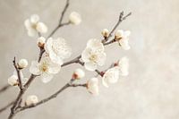 Deze prachtige afbeelding toont delicate witte bloesem op een tak tegen een rustige, neutrale achtergrond. De zachte kleuren en eenvoudige compositie maken het tot een kalm en sereen ontwerp, ideaal voor een rustige slaapkamer of woonkamer. De natuurlijke schoonheid van de bloeiende takken brengt een gevoel van frisheid en elegantie, perfect passend bij een minimalistische of klassieke inrichting. Dit ontwerp straalt rust uit en is een tijdloze toevoeging voor elk interieur dat een vleugje natuur wil binnenhalen.