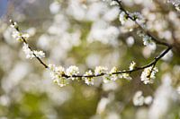 De witte Japanse bloesem met een mooie scherpte-diepte voor een heerlijk vredig effect. Binnenkort in jouw huis eindeloos wegdromen bij deze romantische foto?