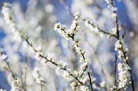 De witte Japanse bloesem met een mooie scherpte-diepte voor een heerlijk vredig effect. Binnenkort in jouw huis eindeloos wegdromen bij deze romantische foto?
