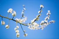 De witte Japanse bloesem met een mooie scherpte-diepte voor een heerlijk vredig effect. Binnenkort in jouw huis eindeloos wegdromen bij deze rustgevende foto?