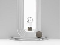 Driedimensionaal (3D) abstract design van omgekeerde bogen met minimalistische details van hout en chroom of metaal. Past bij Witte bogen als tweeluik.