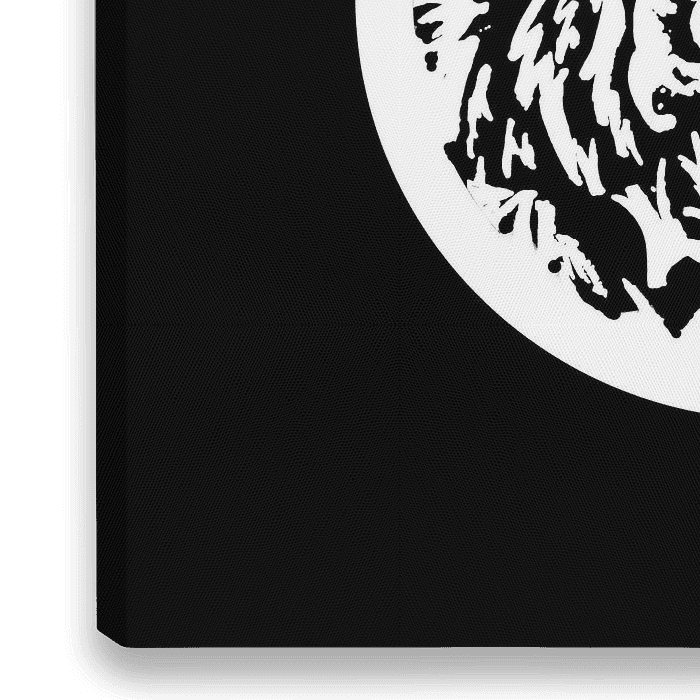een decoratief zwart-wit kunstwerk van een gevaarlijke tijger in een cirkel.