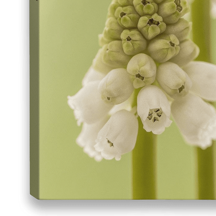 Muscari botryoides 'Album' is de witte vorm van de in Nederland voorkomende druifhyacint.
