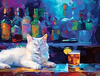 Koop dit digital art kunstwerk Witte kat in de bar van Littlewhitecat als reproductie op canvas, aluminium dibond, (ingelijste) fotoprint, behang en ArtFrame, op maat geprint in Fine-Art kwaliteit.