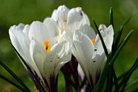Ik heb deze foto van 3 witte krokussen gemaakt op landgoed Staverden in de gemeente Ermelo. Deze krokussen staan voor het kasteel Staverden langs het pad, ik hoefde voor deze foto niet het gras op. Om deze macrofoto te kunnen maken heb ik mijn camera onder mijn statief gehangen en later de foto omgedraaid. In de witte bloemen van de krokussen zie je de gele stamper zitten. Tijdens het maken van deze macrofoto had ik het geluk dat de zon door de bewolking scheen. Deze krokussen zijn de aankondiging van de komende lente.