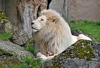 Leeuwen hebben meestal een hazelaar of goudbruine kleur voor hun vacht. In het geval van witte leeuwen is de vacht echter volledig wit of een zeer bleke versie van de gebruikelijke hazelaar bont. De kleur van de vacht kan variëren van blond tot bijna wit. Deze verkleuring wordt geërfd van de ouders, maar is een recessieve eigenschap, wat betekent dat de kans groter is dat een hazelaar kleurrijke leeuw uit hazelnootkleurige leeuwen wordt geboren dan die van een witte leeuw. Evenzo kan fokken in witte leeuwen resulteren in bruine nekken. bron wikipedia .
